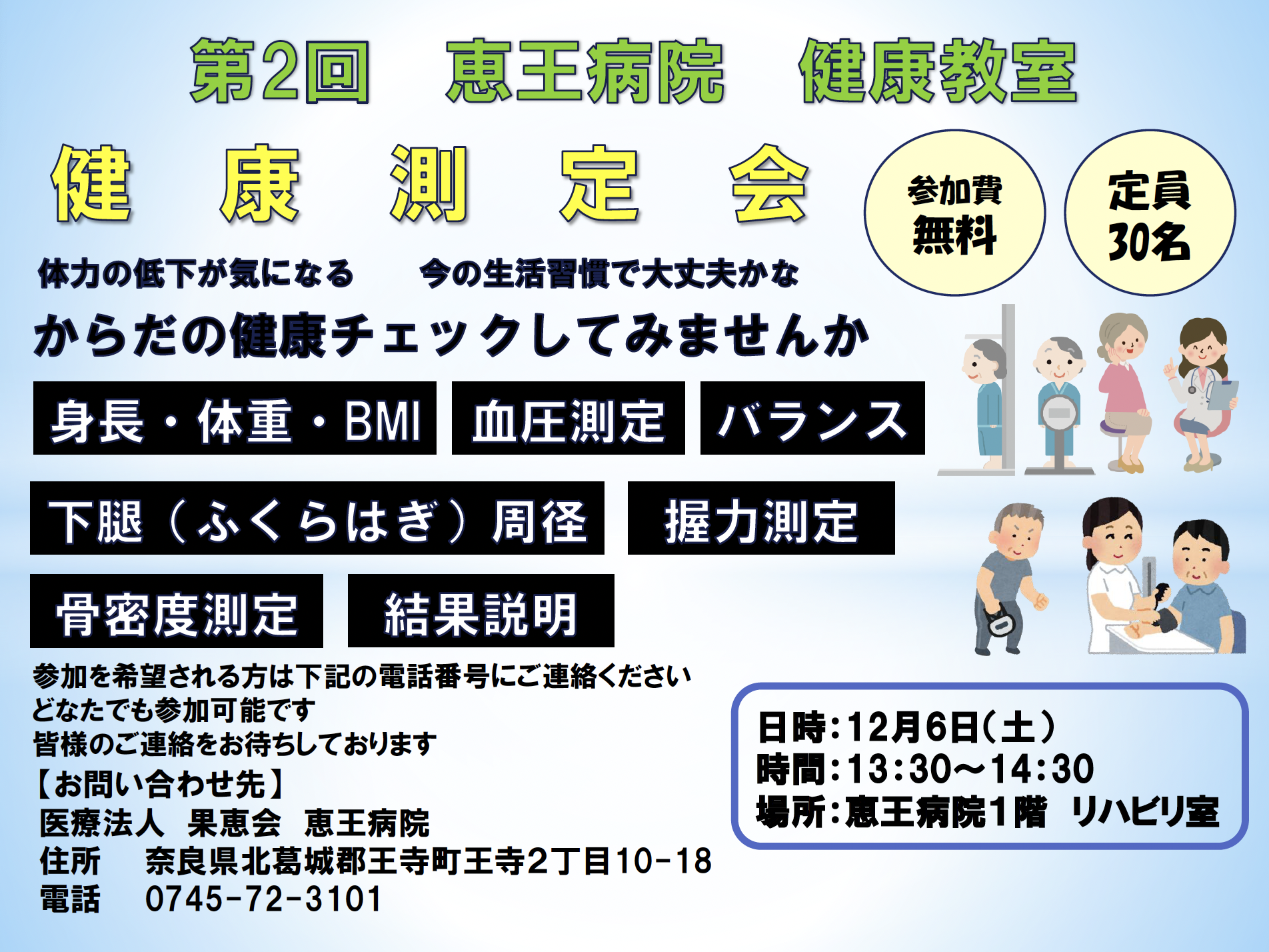 【参加費:無料】令和7年12月6日(土)第2回健康教室開催のお知らせ