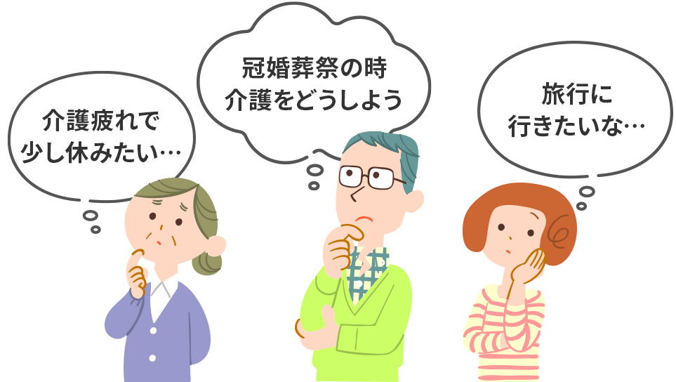 医療管理が必要な方、在宅で常時介護が必要な方、介護保険によるショートステイが困難な方など。