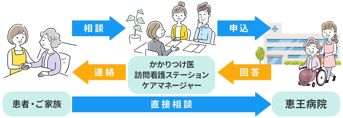 ※認知症で(不穏、徘徊、暴言・暴力等)などがある方、神経難病の方で当院での対応が困難と思われる方は、お受けできない場合がありますので予めご了承ください。